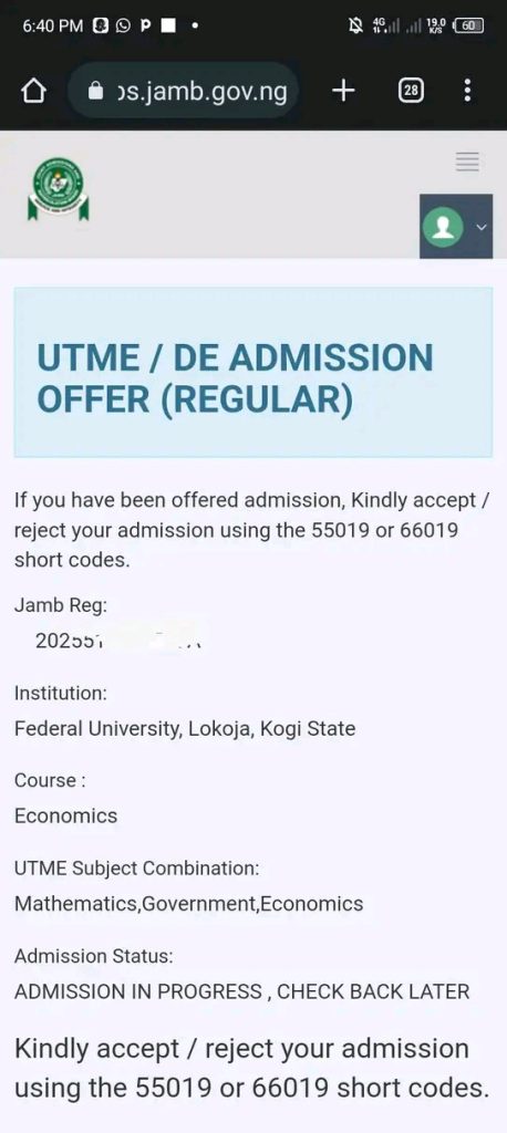 How to Check FULOKOJA Admission on JAMB CAPS